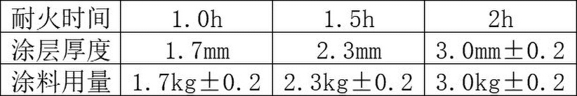 五、耐火時(shí)間和涂層厚度及涂料用量參考下表∶